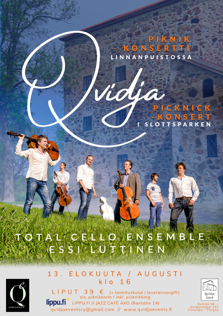 Vuonna 2023 piknik-konsertissa Qvidjan linnan pihalla vieraili klassisen musiikin sellisteistä koostuva mainetta niittänyt Total Cello Ensemble solistinaan mezzosopraano Essi Luttinen. Konsertti yhdisti esittäjiensä tapaan klassisen musiikin osaamisen rohkeasti musiikilliset raja-aidat rikkovaan ohjelmistoon. Konsertissa kuutiin vaihtelevasti sekä instrumentaali- että laulunumeroita Sibeliuksesta Säkkijärven polkkaan ja ooppera-aarioista argentiinalaiseen tangoon.